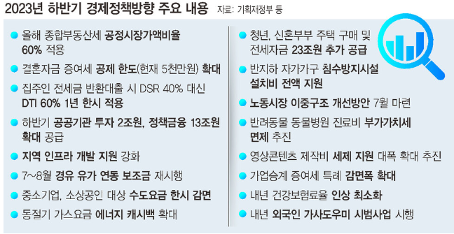 정부가 발표한 하반기 경제정책방향에는 윤석열 정부 2년차 들어서도 이어지고 있는 선명한 감세 기조가 곳곳에 담겼다. 정부가 감세 정책의 목표나 효과를 꼼꼼히 따지기보다 ‘일단 깎고 보자’식 접근을 하고 있다는 평가가 나온다.