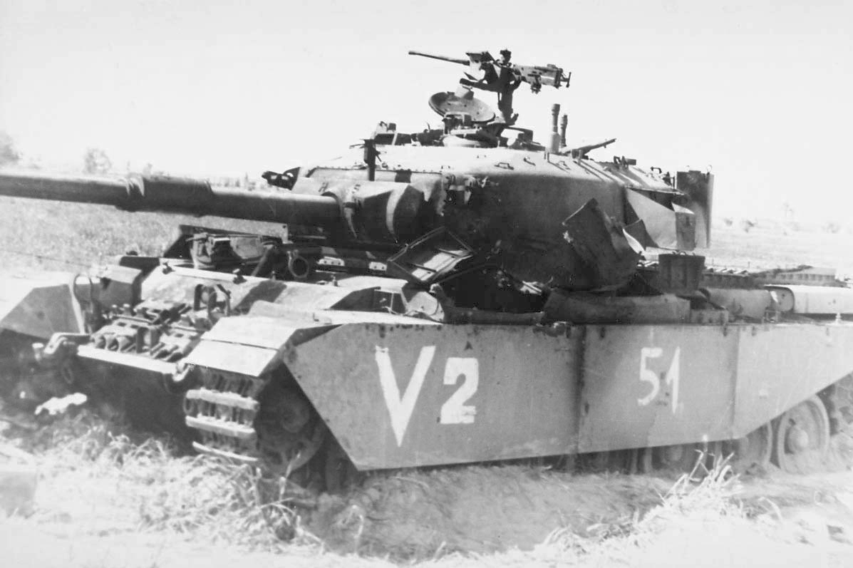 이스라엘 군대를 향해 발포하는 요르단 기갑부대. 이스라엘군은 요르단 군대가 참전할 것이라고 예상치 못했다.