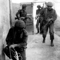 이스라엘 보병이 5천여 세대가 사는 카라메 (Karameh) 로 진입하고 있다.