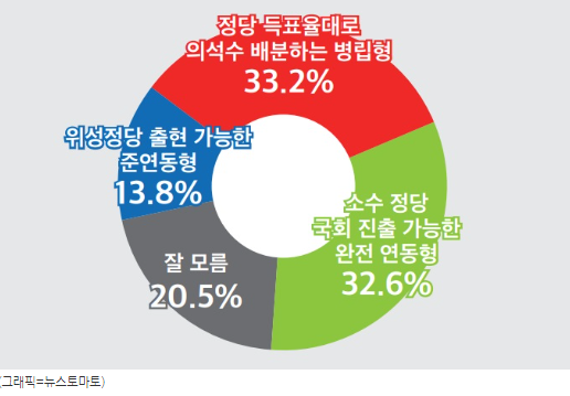 완전연동형(32.6%), 준연동형(13.8%), 병립형으로 회귀(33.2%), 모름 (20.5%)