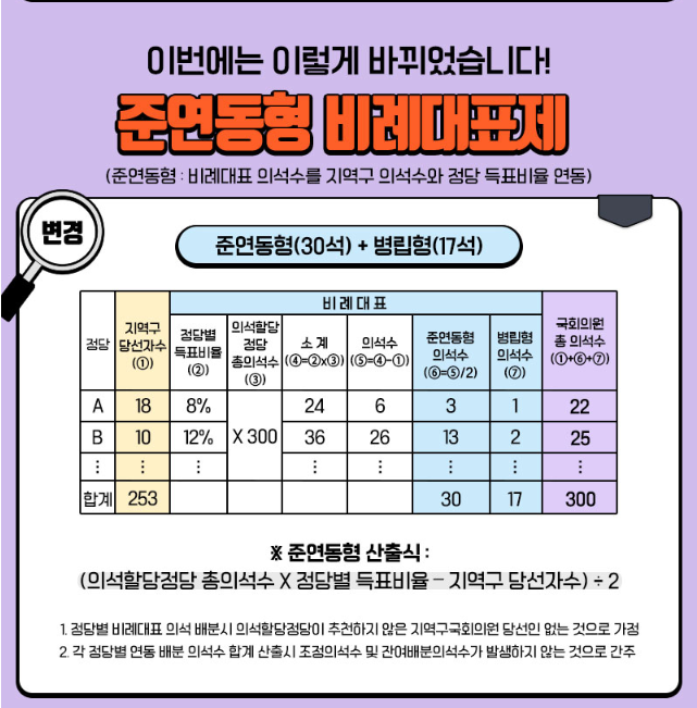준연동형(30석) + 병립형(17석)
