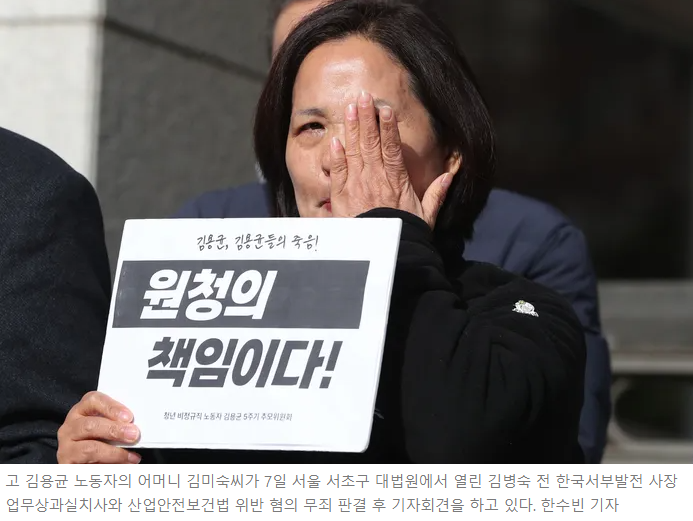 충남 태안화력발전소에서 작업하다 컨베이어벨트에 끼여 사망한 하청업체 비정규직 노동자 김용균씨(당시 24세) 사건과 관련해 대법원이 원청업체인 한국서부발전 법인과 그 대표인 김병숙 전 사장의 무죄를 확정했다.