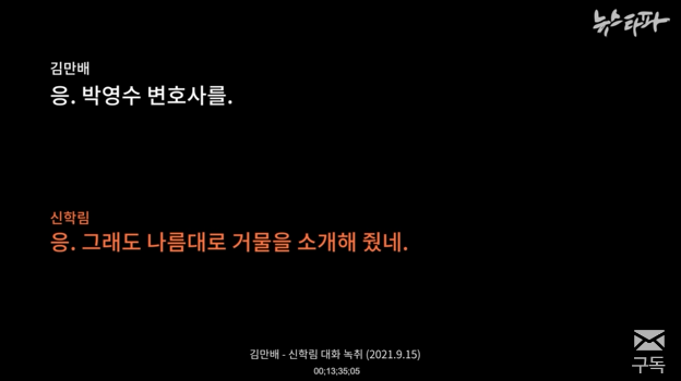 김만배가 신학림을 만나서 대장동 투자 설계도를 설명해줬고, 신학림은 이것을 녹취해서, <뉴스타파>에 보도할 가치가 있으면 하라면서, 그 녹취를 전달했다. 그러나 김만배가 실제 언론보도를 염두해 두고 신학림을 만나 자기에게 불리한 내용이 많이 담긴 '대화'를 신학림과 나눴다는 증거는 아직 없는 상태이다.