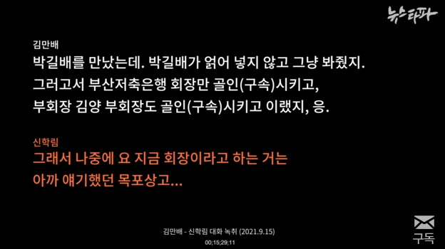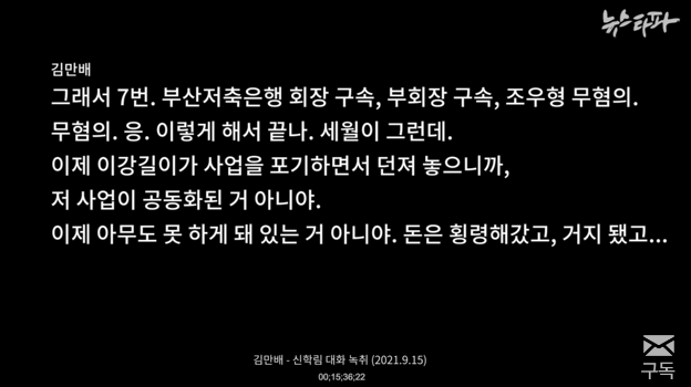 뉴스타파의 김만배-신학림 녹취 보도 핵심은, 윤석열 대검 중수2과장이, 대장동 사업의 자본이 된 부산저축은행 1155억원 불법 대출 사건 브로커 의혹을 받던 조우형 수사를 무마해줬다는 것이다.