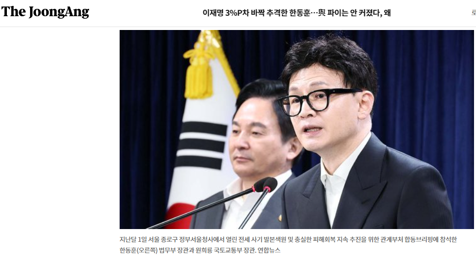 이재명 3%P차 바짝 추격한 한동훈…與 파이는 안 커졌다, 왜
