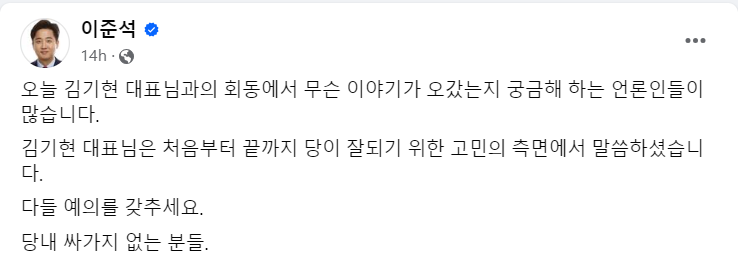 12월 13일 이준석이 김기현을 옹호하는 발언.