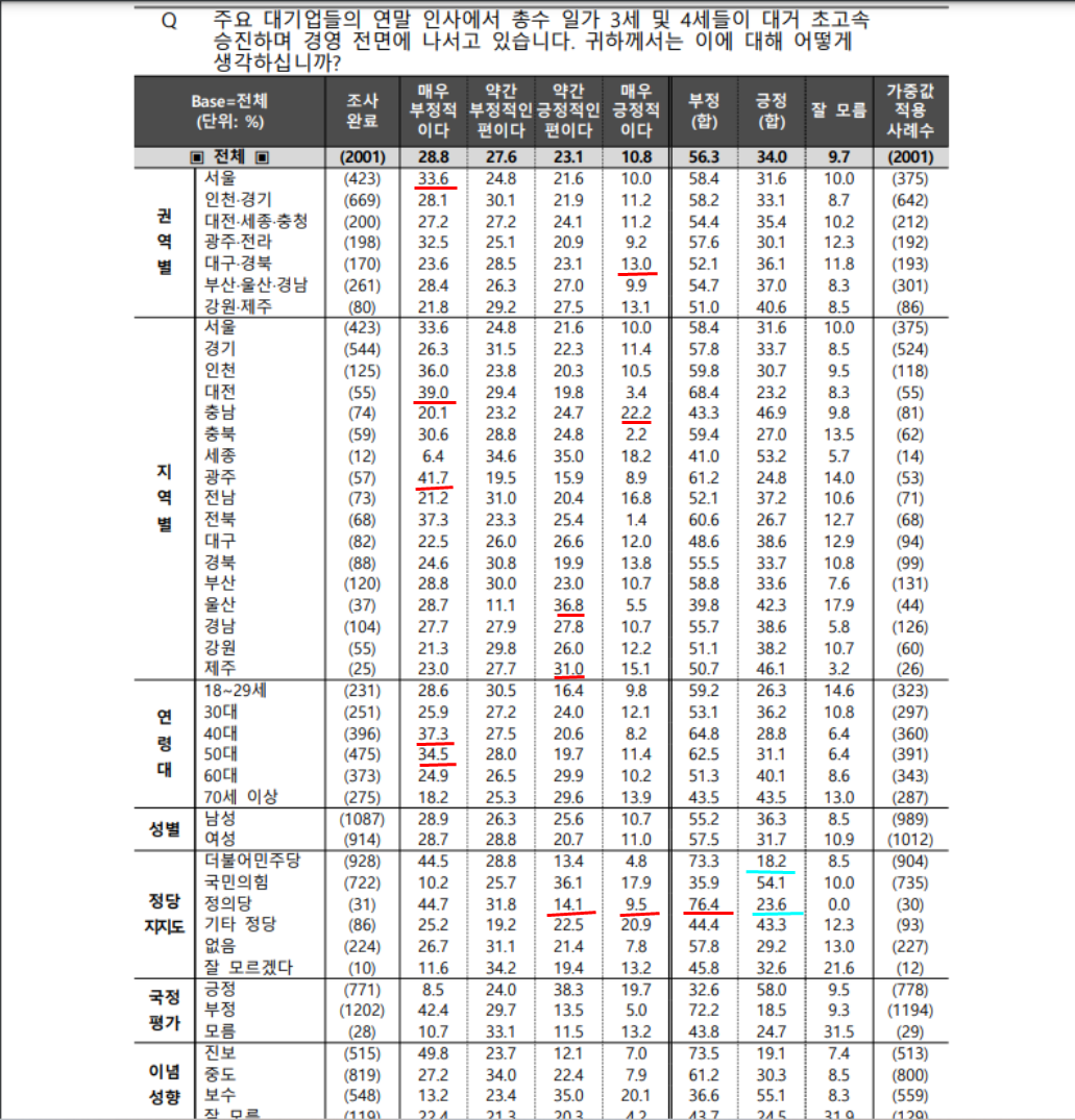 1. 재벌 경영세습 반대 56.3%, 찬성 34%