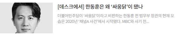 [데스크에서] 한동훈은 왜 ‘싸움닭’이 됐나