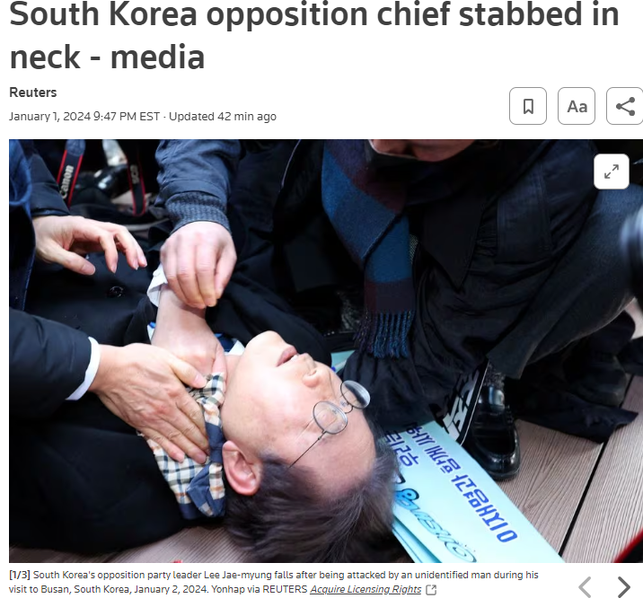 식사하다 라디오 뉴스에서 이재명 피습 사건을 보도하고 있다. jan 1, 2024, 10 p.m Canada