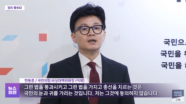 그런 법을 통과시키고, 총선을 치르는 것은 국민의 눈과 귀를 가리는 것입니다. 저는 그것에 동의하지 않습니다.