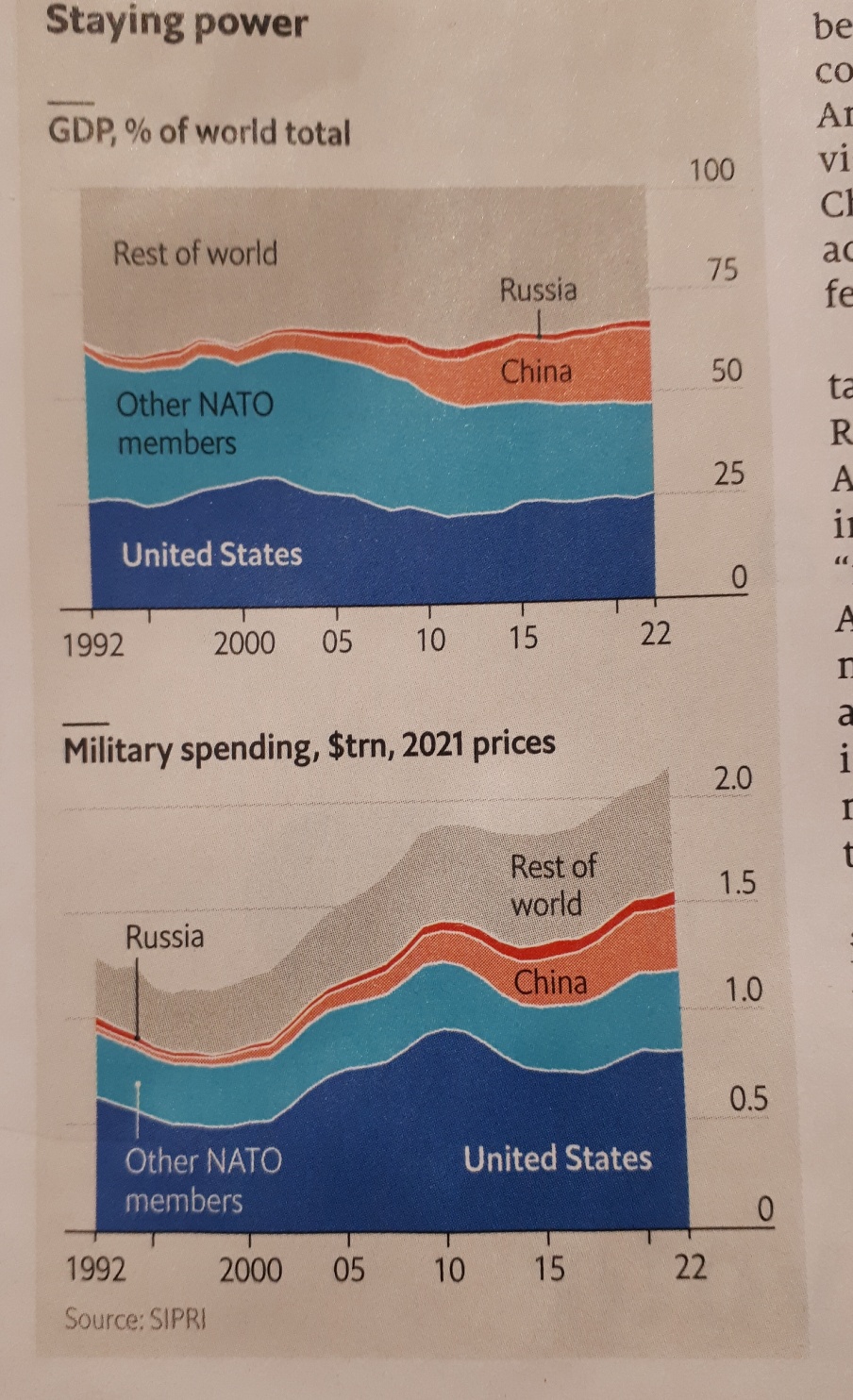 2)미국은 군사력 1위, 2위부터 10위까지 합쳐도 미국의 국방비가 더 많다.