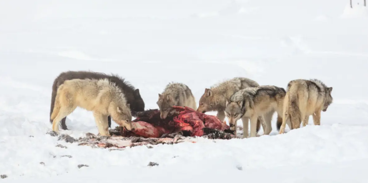 “Grizzly bears, black bears, coyotes, wolverines even, foxes, even birds will scavenge off carcasses…eagles, ravens all those meat eaters benefit by the protein that the wolves leave on the landscape that would otherwise be bound up into live animal,” MacNulty said.