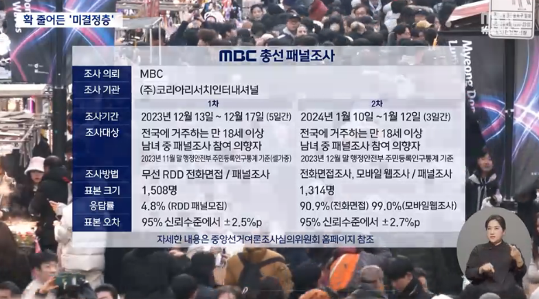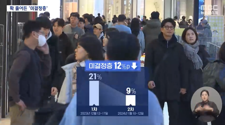 1) 2023년 12월 22일 1차 발표. 미결정층 21%에서 9%로 감소 (12%는 결정)