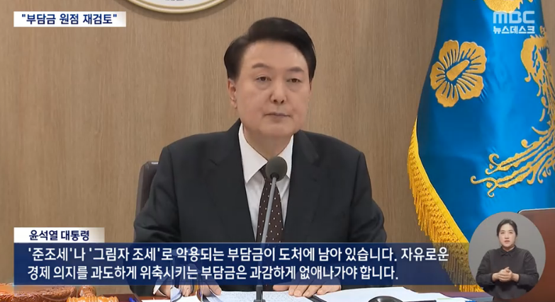 윤석열 대통령이 국무회의에서 "91개에 달하는 각종 부담금을 전수조사해 재검토해달라"고 지시했습니다.