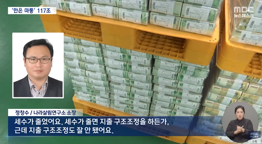"세수가 줄었어요. 세수가 줄면 지출 구조조정을 하든가, 근데 지출 구조조정도 잘 안 됐어요."
