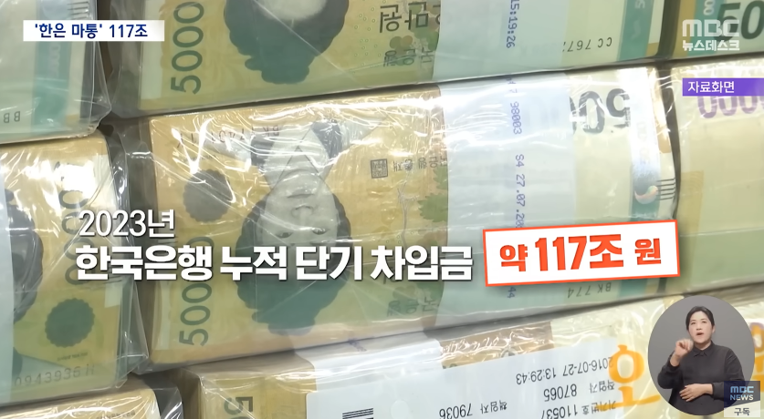 2) 단기 차입 (월말 잔고만 공개함. 한국은행에서 빌림) 2023년 윤석열 정부 누적 단기 차입금이 117조. 이자 1500억원 지불.