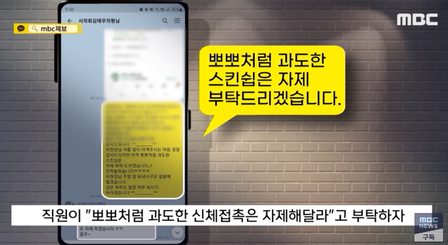 여성 직원 "엉덩이랑 뽀뽀는 당연히 안되는거죠"