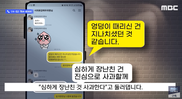 여성 직원 카톡 "엉덩이 때리신 건 지나치셨던 것 같습니다"