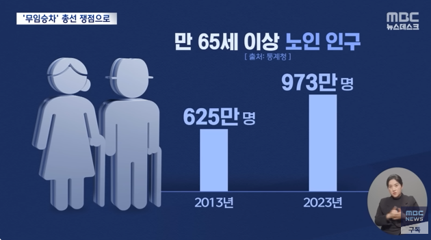 노인인구는 지난 10년 사이 625만 명에서 973만 명으로 늘 만큼 빠르게 늘어나면서 무임승차비용은 수도권 등 교통공사 적자의 한 원인이 됐습니다.