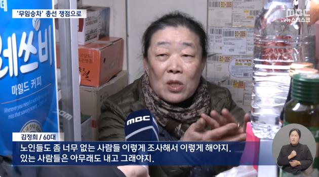 "노인들도 좀 너무 없는 사람들 이렇게 조사해서 이렇게 해야지. 있는 사람들은 내고 그래야지."