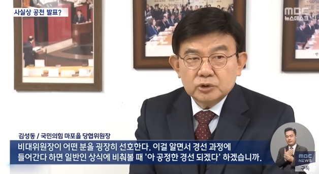 김성동 국민의힘 마포을 위원장 - 한동훈이 김경율을 마포을 후보 편을 들면, 경선과정이 불공정해진다.