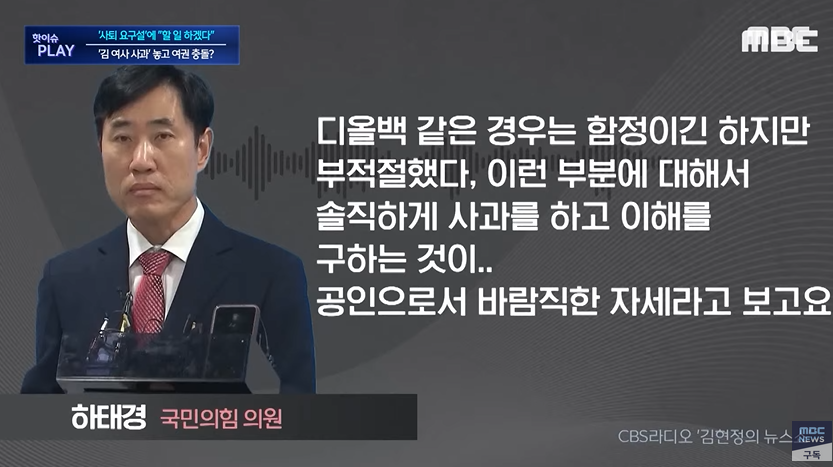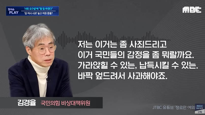 3) 김경율, 이수정, 하태경 등 '디올백 사과'하지 않으면 수도권 선거 진다.