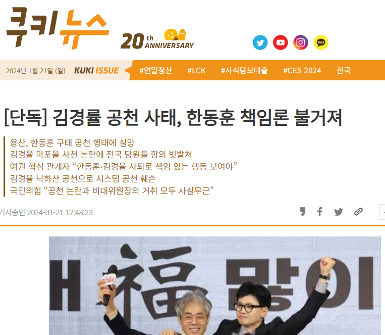 쿠키뉴스. [단독] 김경률 공천 사태, 한동훈 책임론 불거져