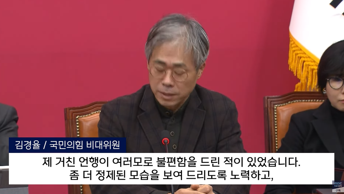 국민의힘 김경율 비상대책위원은 22일 “제 거친 언행이 여러모로 불편함을 드린 적이 있었다”고 밝혔다. 최근 윤석열 대통령의 부인 김건희 여사의 명품 ‘디올 백’ 수수 논란과 관련해 김 여사를 프랑스 왕비 마리 앙투아네트에 비유한 것에 대해 사과한 것이다.