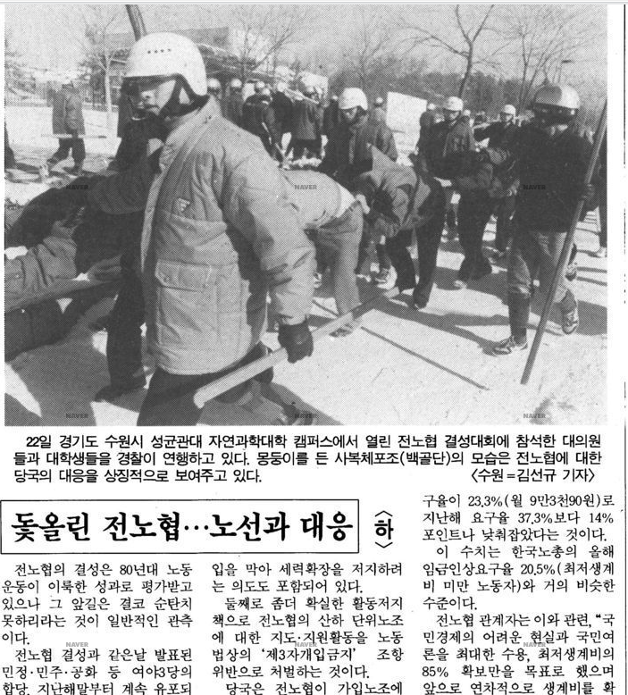노태우 정권은 89년 초 풍산금속 안강공장에 공권력을 투입한 이후 현대중공업·서울지하철노조 파업 등 파업 현장엔 예외없이 공권력을 동원했다.