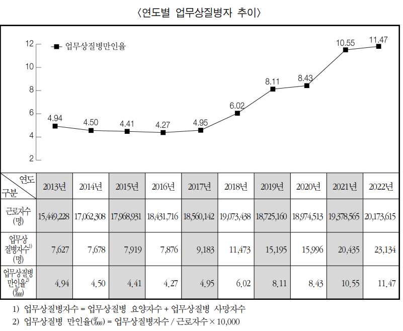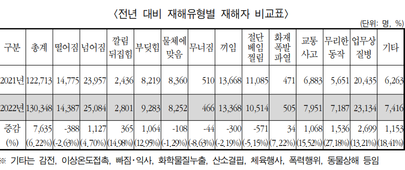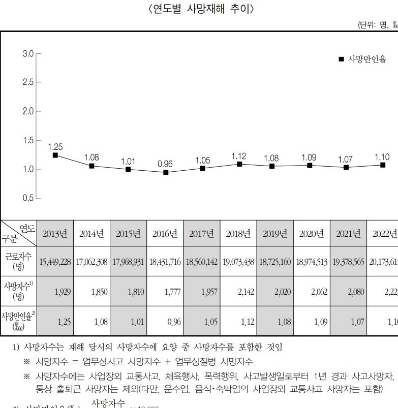 2022년 산업재해 보고서 자료 중에서.