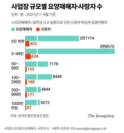 50인 미만 직장에서 산재 사망자의 3분의 2가 발생해왔기 때문에, 중대재해기업처벌법이 반드시 적용되어야, 산업재해 예방효과를 가져옴.