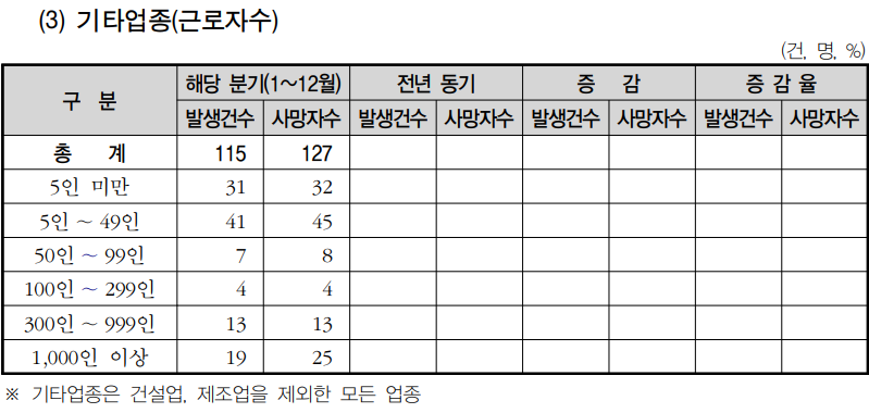 5인 미만 작업장에서 산업재해 발생 건수도 줄일 대책을 마련해야 함.