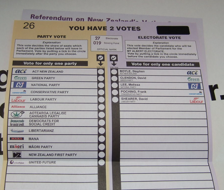 뉴질랜드 1인 2표 (정당 투표, 개인 지역 후보)