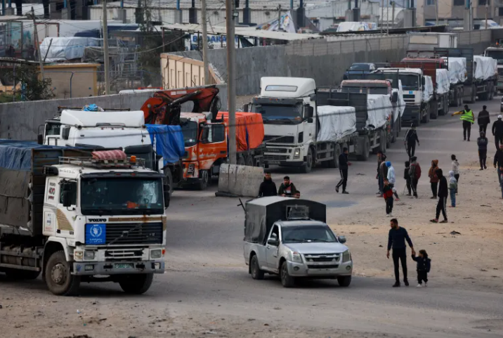 Trucks carrying aid arrive in Rafah in the southern Gaza Strip [File: Mohammed Salem/Reuters]