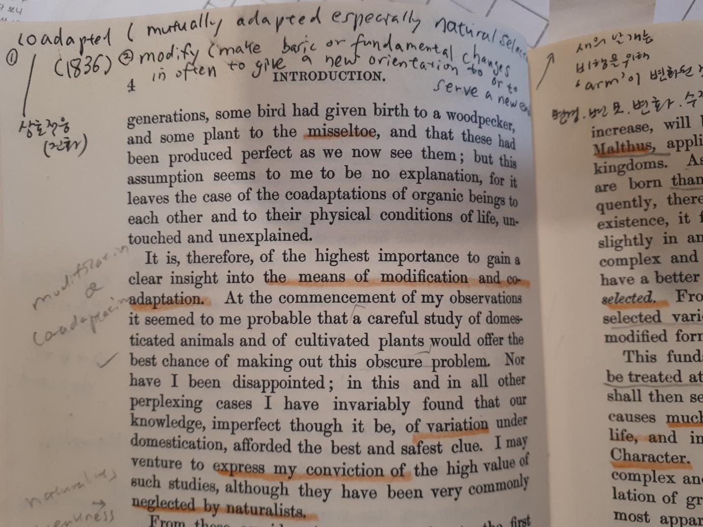 3) 자연 선택은 '변이 modification (변화, 근본적 변화)'의 수단이었다는 의미이지, 독점적인 수단이라는 의미는 아니다.