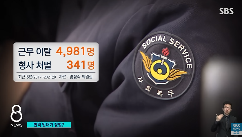 양 의원은 "2017년부터 2021년까지 최근 5년간 사회복무요원 복무 이탈자가 4천981명이고, 같은 기간 근무 중 범죄 등으로 형사처벌을 받은 사회복무요원이 341명"이라며 "사회복무요원 관리에 많은 문제점이 드러나고 있다"고 발의 배경을 설명했다.