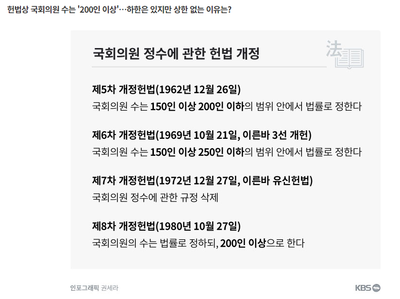 국회의원 정수에 대한 헌법 개정이 마지막으로 이뤄진 게, 1980년이다.