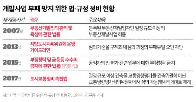 개발사업 부패 방지를 위한 법·규정 정비 현황. 그래픽=김문중 기자