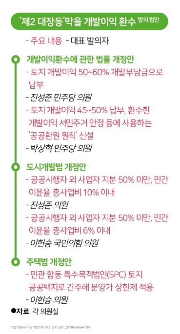 ‘제2 대장동’ 막을 개발이익 환수 발의 법안. 그래픽=송정근 기자