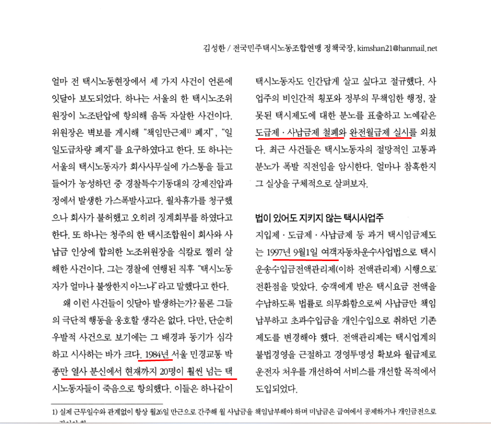 택시 사납금 관련 글. 인터넷 자료.