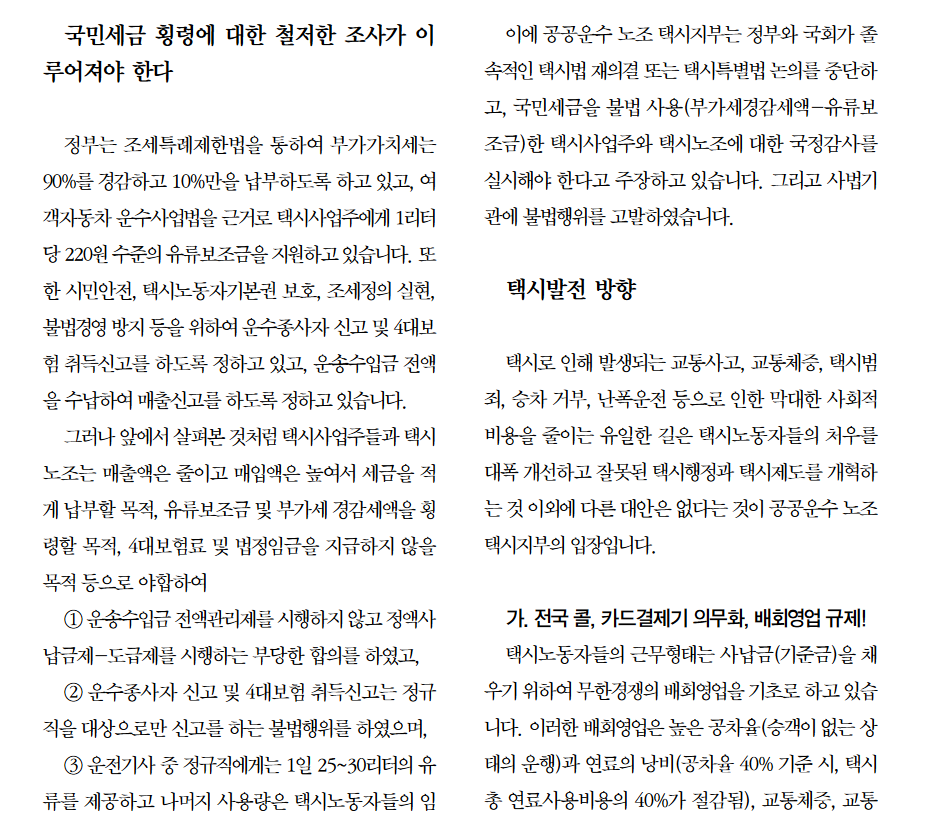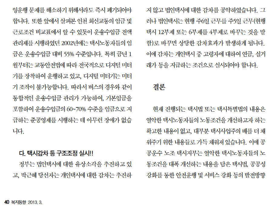 택시노동자 처우 개선과 시민서비스 증진 방안을 중심으로