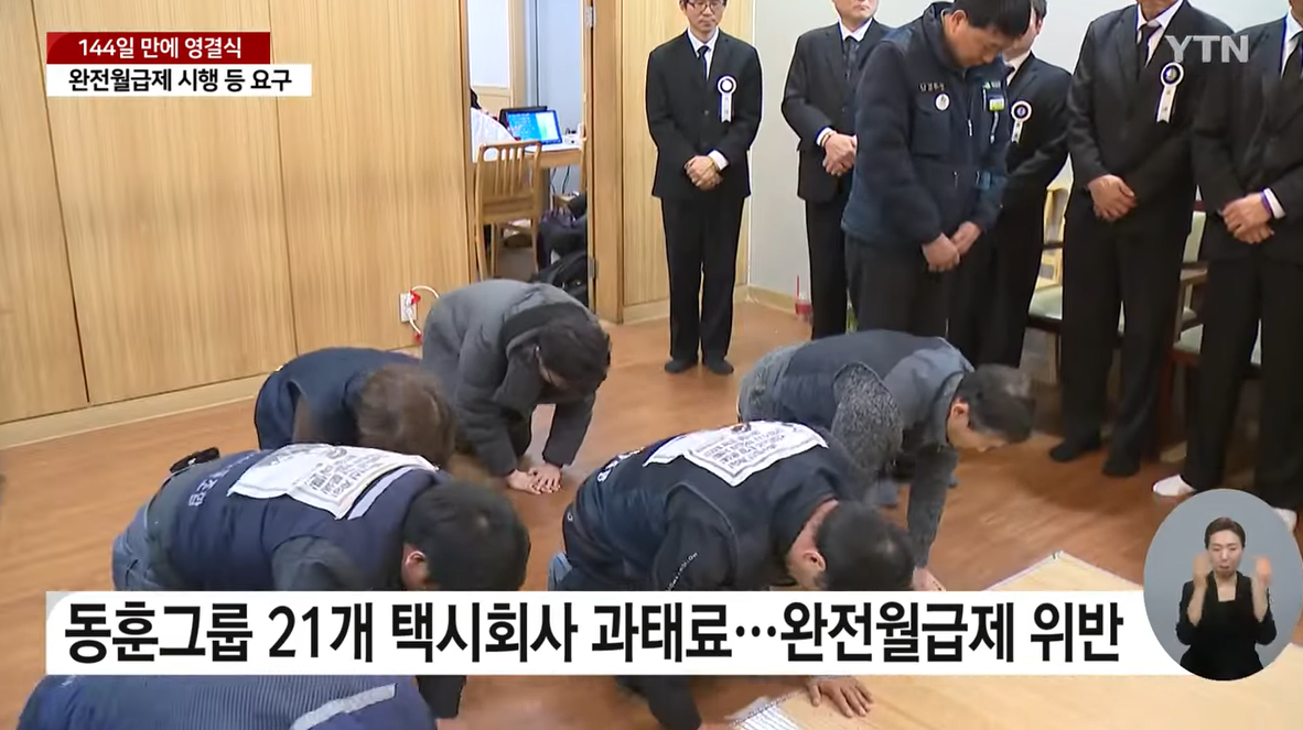 유족과 동료들은 고인이 소속돼 있던 택시업체 대표를 처벌하고 완전월급제를 시행하라고 촉구했습니다.