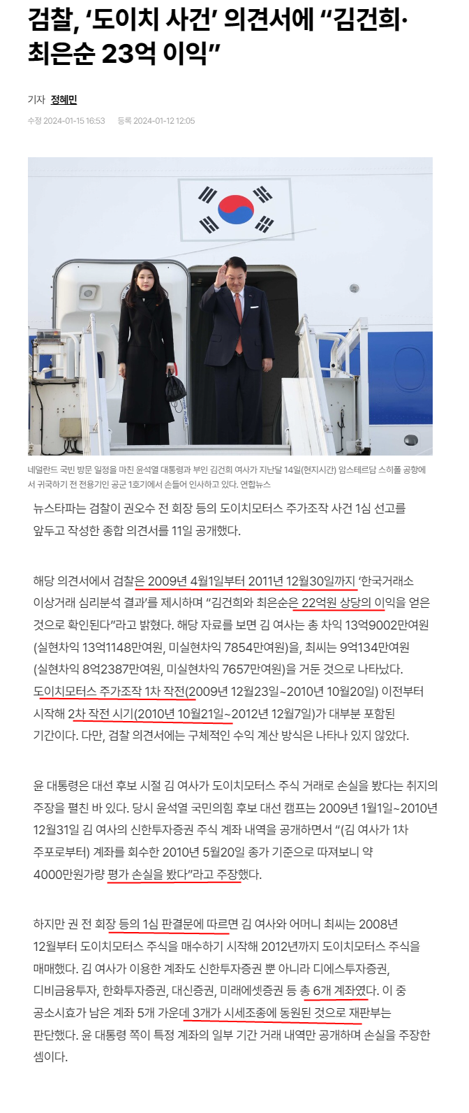 김건희 도이치모터스 주가 조작, 수익, 23억.