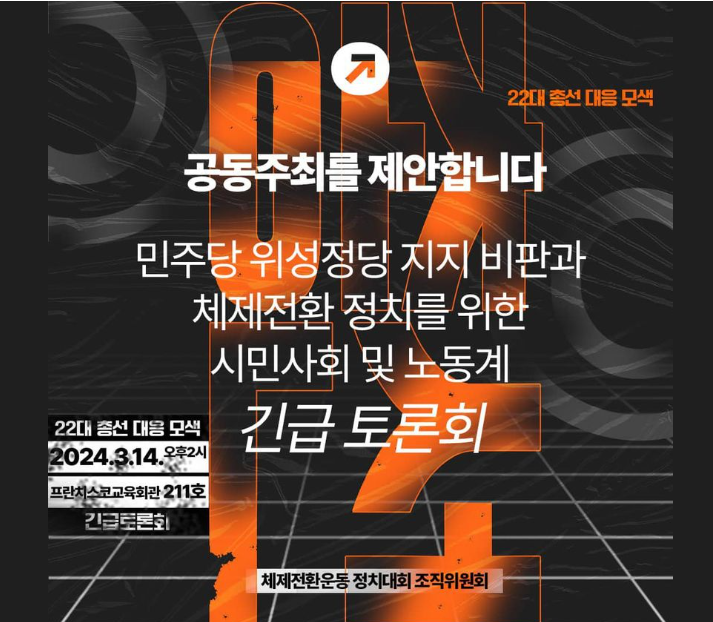 <민주당 위성정당 지지 비판과 체제전환 정치를 위한 시민사회 및 노동계 긴급 토론회>(가) 공동주최를 제안합니다 위성정당 후보 선출과 민주노총 임시 대의원대회(3.18)를 앞두고, 시민사회와