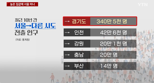 서울 인구 10년간 86만 명 순유출...높은 집값에 떠나 / YTN