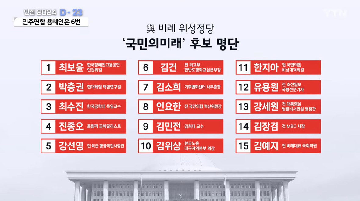 이렇듯 많은 아픔을 겪으며 지역구 공천을 마무리 했지만, 오늘 발표된 국민의힘 비례정당인 국민의 미래 후보 공천 결과는 아쉬움이 더욱 크게 다가옵니다.