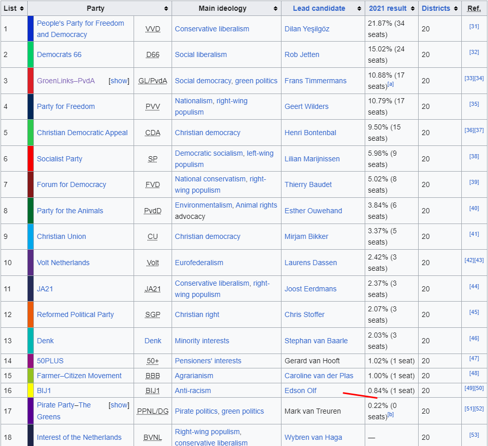 | 네덜란드 11월 총선 1위 극우파, 자유당 37석 확보 (대표: 헤르트 빌더스), 연립정부 수립에 필요한 과반 76석 난항 겪는 중. (0) |