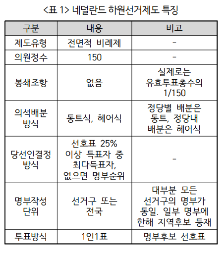 네덜란드 특징. 명부 후보에 대한 유권자의 ‘선호 투표’ 가능.