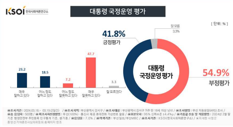 윤석열 국정운영 부정 54.9, 긍정 41.8