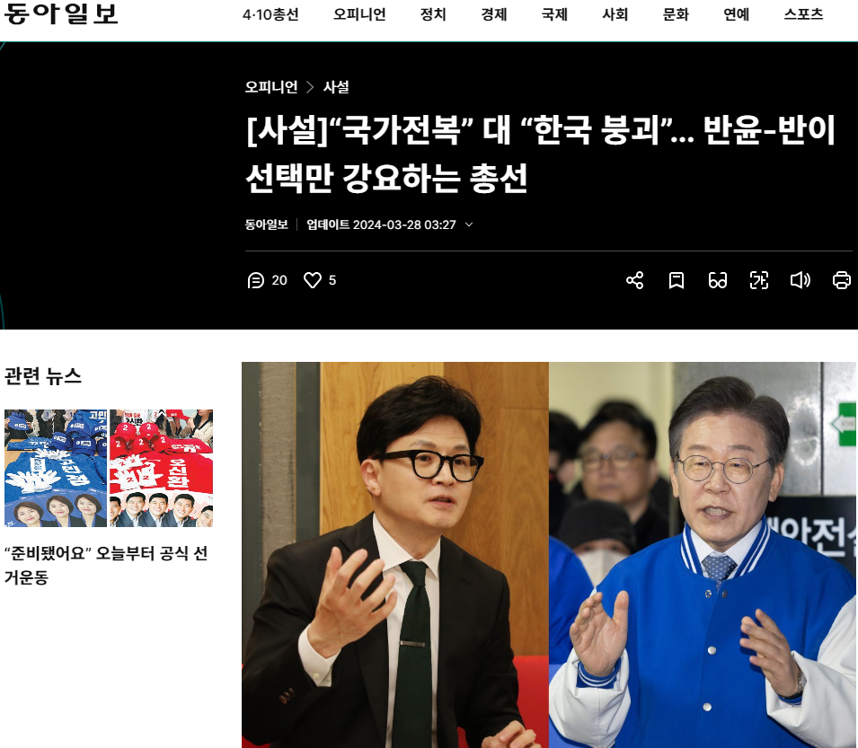 보수 일간지 동아일보가 최근 사설이 달라졌다. 경제면에서는 여전히 자본주의 시장제도의 약점과 단점보다는 '장점'만 부각시키는 친자본의 입장이지만, 정치면과 사설은 '다원주의적 민주주의' 논조를 가끔씩 드러낸다. 그러나 아직 멀었다. 동아일보가 최소한 정치 면에서 독일, 네덜란드,스웨덴과 같은 '연립정부' '연합정치'를 더 본격적으로 소개해야 한다.